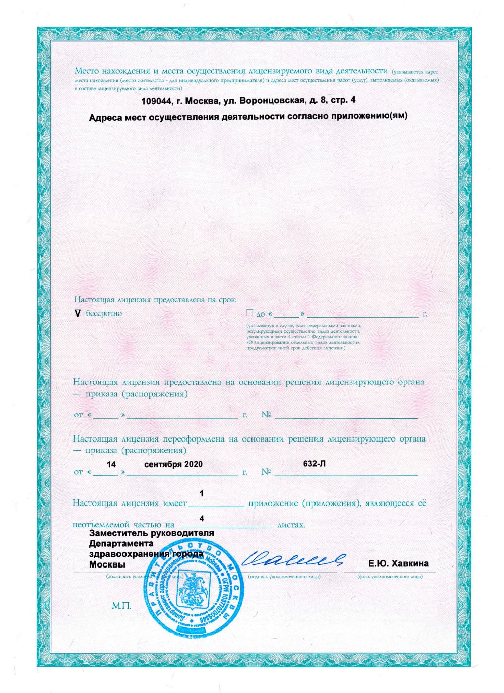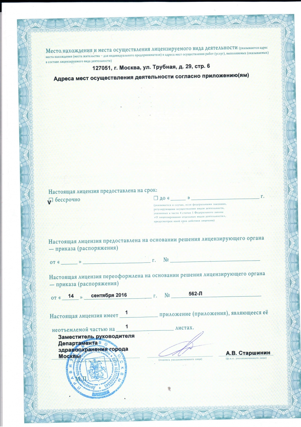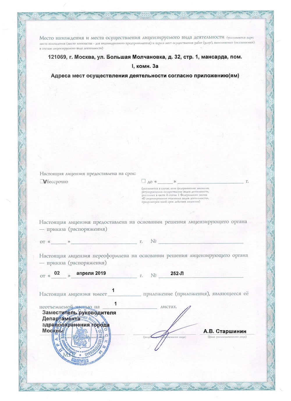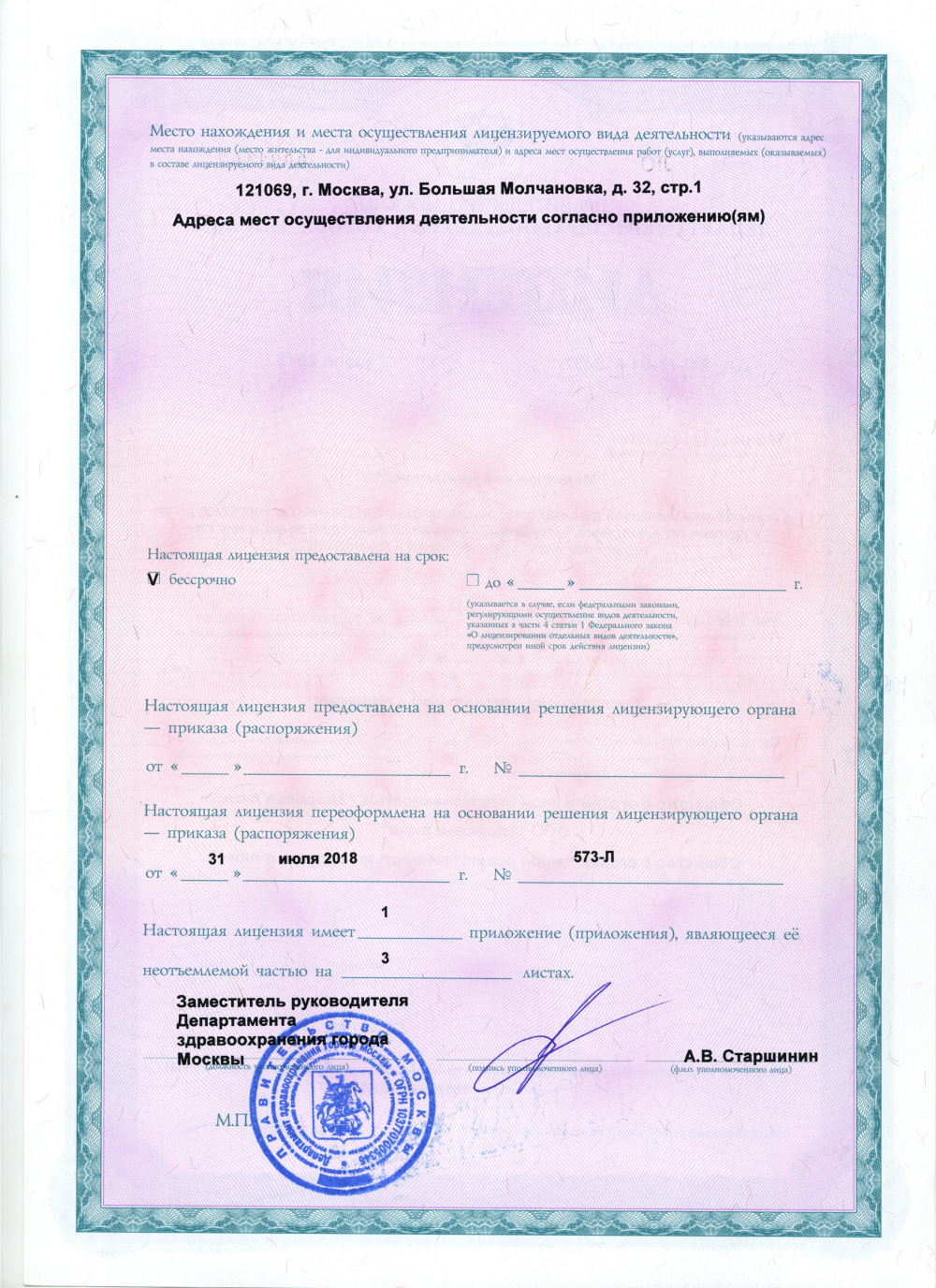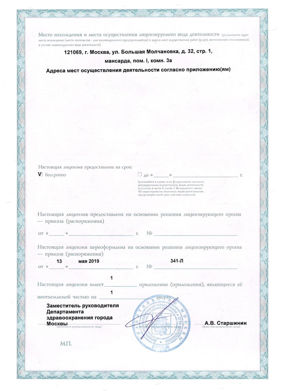 Лицензия «Он Клиник на Зубовском» №ЛО-77-01-010831 от 27.08.15